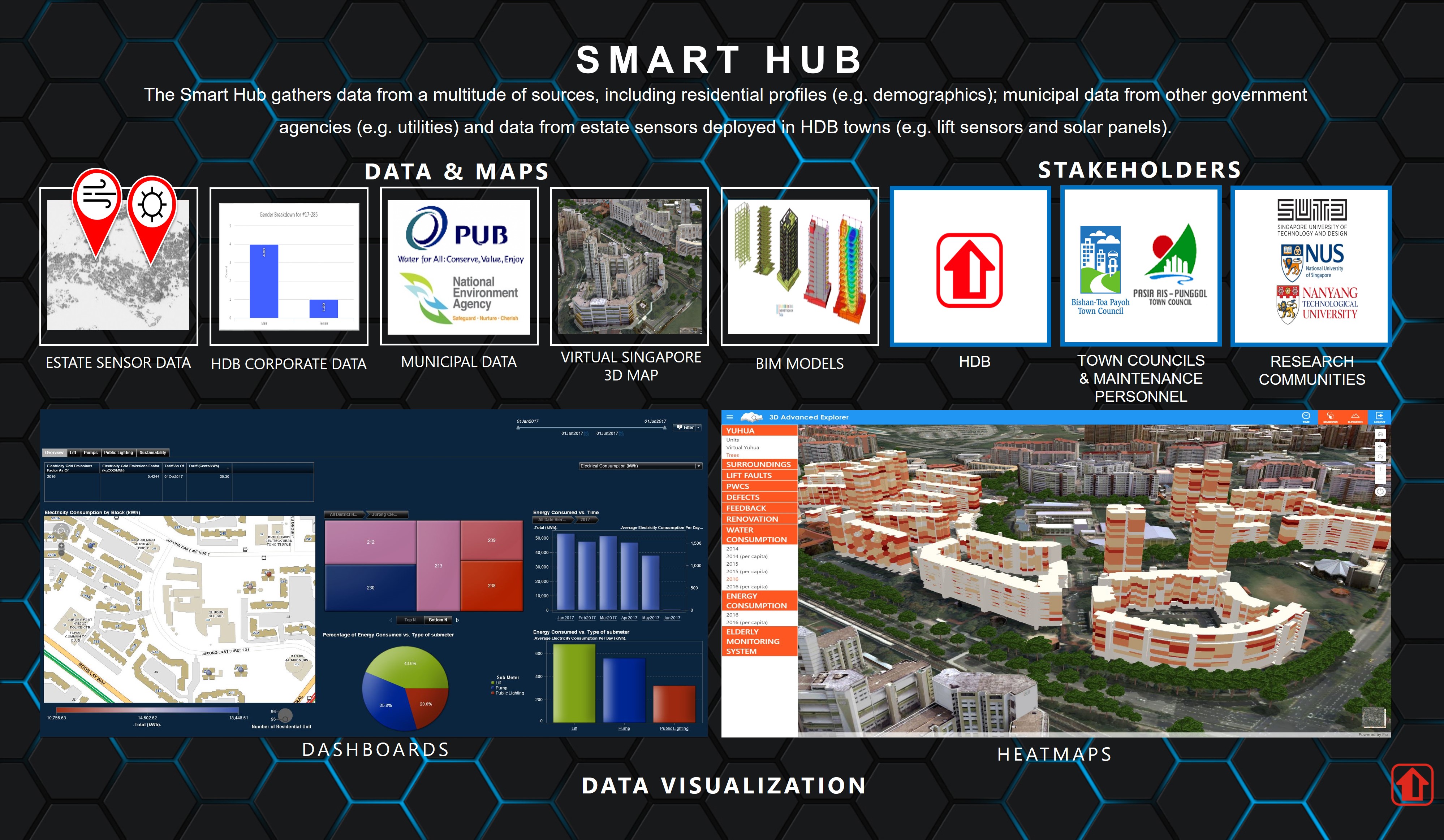 The Housing & Development Board (HDB) has developed the Smart Hub, a platform that integrates data across 10,000 public housing blocks in 24 towns. Presently, we face many urban challenges such as ageing infrastructure and climate change. To overcome them, HDB is leveraging the power of data to create housing estates that are more efficient, sustainable, liveable and safe. Supporting the Smart Hub is the enabling infrastructure of Sensors and Connectivity. HDB is deploying sensors and various communications technologies to monitor the operations of estate services (e.g. solar PV, elevators, waste collection). Data from residents and municipal services are also integrated into the Smart Hub. Beyond real-time monitoring, the Smart Hub automates and optimizes systems through the use of AI, ensuring critical systems function reliably without posing safety concerns. For example, by shifting from a reactive mode of maintenance to a proactive one for HDB’s 25,000 elevators, faults are diagnosed before they occur, maintenance cycles are optimized, and HDB and local councils are better equipped to deliver good service to residents. Through the capabilities and potential of the Smart Hub, the public housing landscape of Singapore will be transformed into estates that learn.