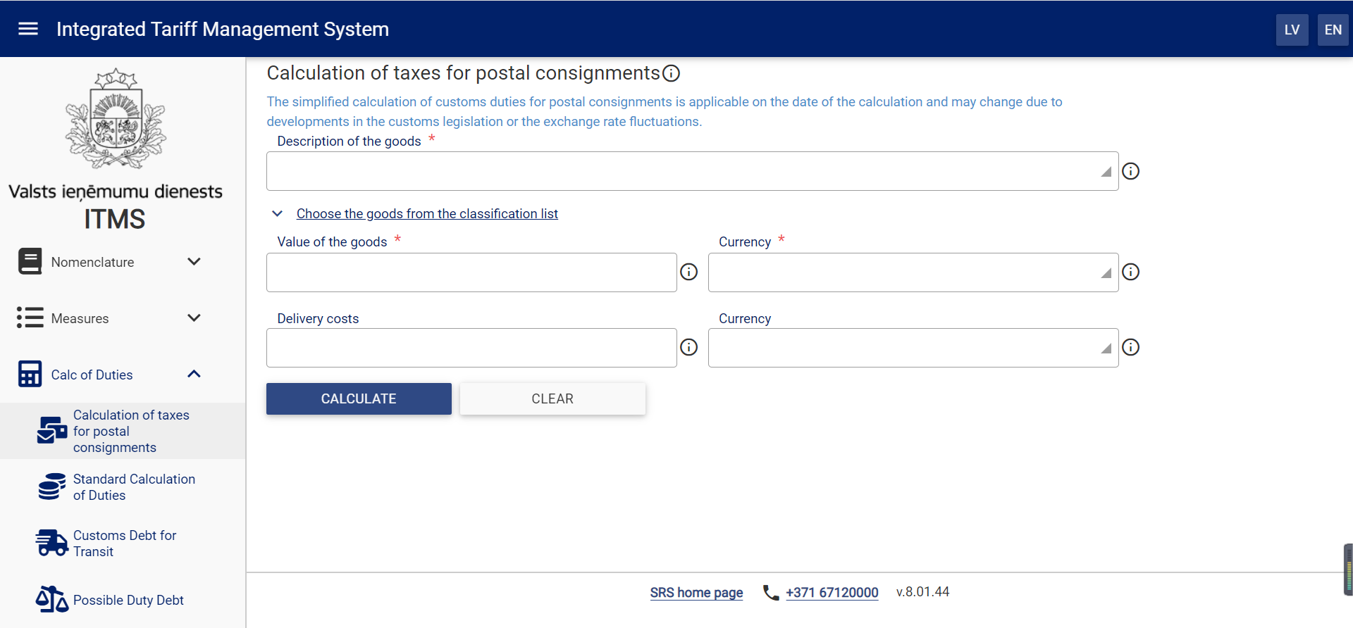 Simplified import customs declarations for postal items has been introduced for clearance of low-value postal items from countries outside the EU: the client can complete customs formalities when it is convenient and without a service fee. Thanks to this solution, there is no need for clients to authorize postal or express service providers to perform customs clearance on their behalf. Filling in the form requires only the data available about the shipment. Additionally, for the client’s convenience, a tax calculator for postal items is developed with which you can determine – before making a purchase in the online store – if the simplified declaration can be used and what the tax might be.Additional information: https://www.vid.gov.lv/en/customs-clearance-and-receipt-consignments