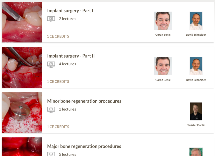 The Dental Campus runs an innovative online platform providing well structured education in implant dentistry utilizing modern web technology. The contents of the educational program are made available by an international network of teaching centers and are structured in modular elements covering the complete field of implant dentistry.