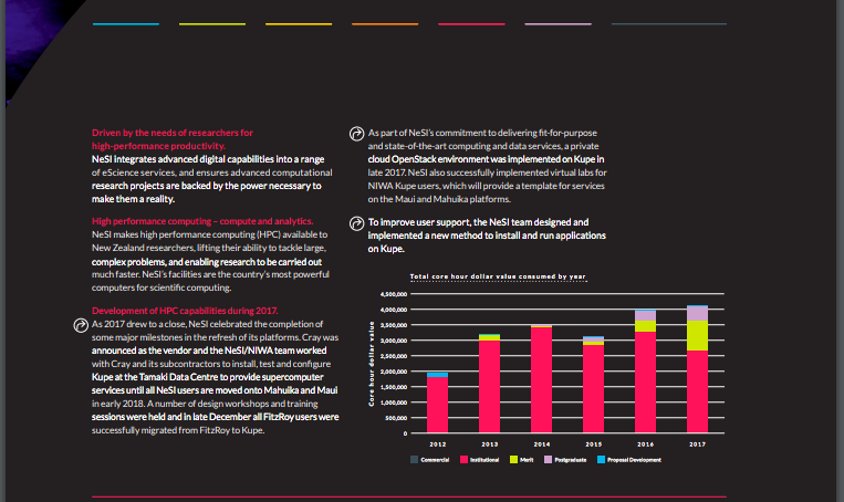 NeSI - New Zealand eScience Infrastructure - is New Zealand's computing research infrastructure. We provide high performance computers and support systems to enable the country's researchers to tackle the world's largest problems.NeSI's strengths surround High Performance Computing. We place strong emphasis on both the technical aspects, such as providing excellent hardware and software, and the human aspects, such as support and training.The NeSI Governance Board is made up of representatives from each major investor, as well as an independent Chair and an independent director with international research infrastructure leadership experience.Our Support Team is comprised of experts who provide computational science support and work directly with investigators to improve their research productivity on NeSI platforms.