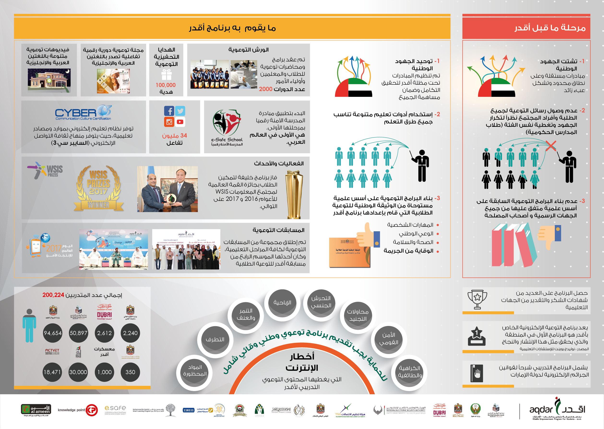 In terms of technology, the UAE has increased internet use from 19% in 2000 to 98.4% in 2018, according to Internet World Stats (IWS). However, the culturally and ethnically diverse nature of the UAE creates a potential for the use of technology in ways that are culturally inappropriate, unethical, or even criminal. Therefore, the need arose to create an awareness program for the entire community to help them avoid, detect, overcome and resist a considerable amount of internet related risks including bullying, identity theft, online scams and the spread of negative and destructive ideologies such as racism, extremism, xenophobia, hatred and violence through social media.The awareness initiative was initiated by H.H. Sheikh Saif Bin Zayed, Deputy Prime Minister and Minister of Interior, as a part of the Khalifa Empowerment Program, which aims to develop the next generation of UAE citizens and expats by equipping them with the knowledge, skills and expertise to be productive members of society, to create awareness of unethical behaviours in using the internet, and to tackle potential risks.