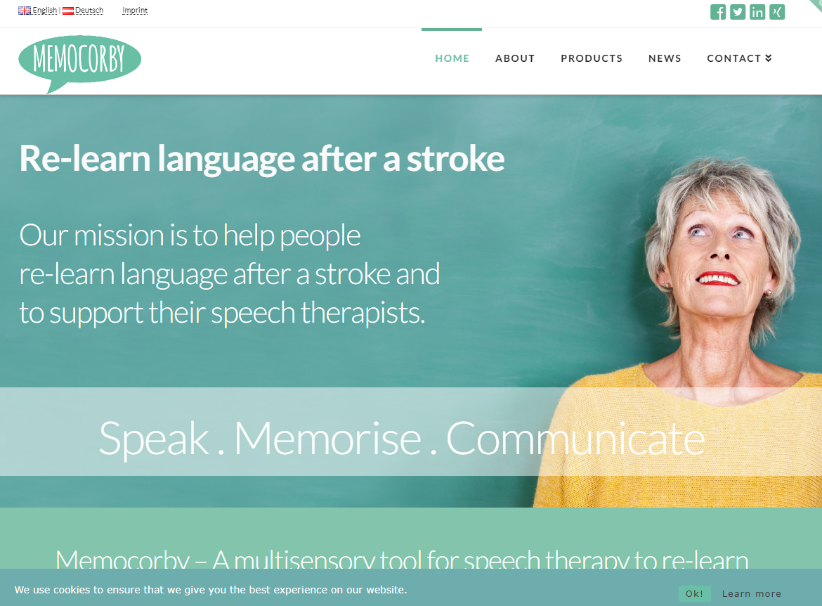Speak. Memorise. Communicate. Neuro-scientific studies show that adults as well as children learn especially well when their brain is simultanously stimulated by haptic, visual and auditory stimuli. The better when you make it easy and fun to work with the therapy tool and add repetition as well as positive emotions. That’s what we had in mind when we developed our Memocorby cubes and the therapy activities. You can use them anywhere – also at home!Memocorby is an innovative, multi-sensory learning tool for speech therapy that enables people to see, hear and grab language. According to neuro-scientific studies this is the best and most sustainable way to learn language. Memocorby consists of 5 – 10 cubes, a tablet and an app for language therapy activities. In the spirit of Maria Montessori, Memocorby encourages patients to re-learn language by giving them a speech therapy tool they can use independently.