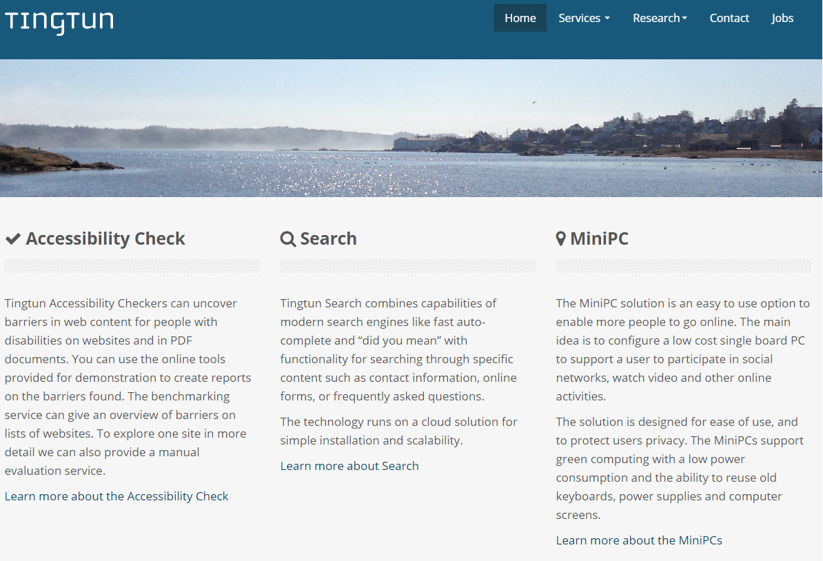 Tingtun Termer is a tool to access definitions directly from the text where a term is encountered. Definitions can come from dictionaries or tailored in-house to improve precision. Termer improves the users’ privacy and saves time.Tingtun Accessibility Checkers can uncover barriers in web content for people with disabilities on websites and in PDF documents. You can use the online tools provided for demonstration to create reports on the barriers found. The benchmarking service can give an overview of barriers on lists of websites. To explore one site in more detail we can also provide a manual evaluation service.