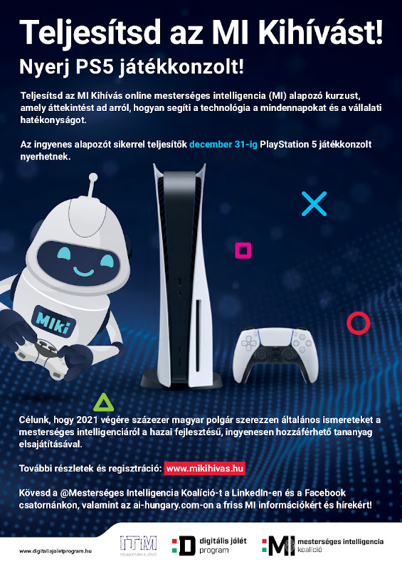 The AI Challenge was launched as of 1 December 2020 with a double purpose. Firstly, a total of 1 million citizens should be made aware of the benefits and effects of Artificial Intelligence via exhibits, events, brochures, contests and the website https://ai-hungary.com/; secondly, the members of the Hungarian society can complete a free locally developed online course that was drawn up by professionals of ELTE University. It helps participants to get an overall idea about what AI is all about, and it provides an overview about its ethical implications and common use cases. As regards the first purpose of the AI Challenge, in 2021, nearly 4 million out of 10 million Hungarian citizens received information about AI. As regards the second purpose of the AI Challenge, in 2021, more than 11,000 people have completed one of our AI Courses. As part of the AI Challenge, we shot 5-10 minutes YouTube videos from a variety of industries, for a total of 10 unique episodes with a well-known expert on the subject. We have also provided training for lawyers. The basic level Hungarian language AI course will be followed by specialized ones.