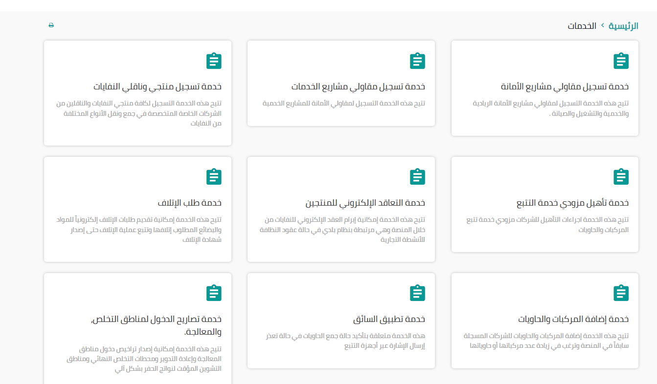 Jeddah Main Municipality: Yasser Alsharif, Email ymalsharief@jeddah.gov.sa Web site: https://www.jeddah.gov.sa/ -National Center for waste management. Role: specific regulations for waste management and certifying waste handlers.https://mwan.gov.sa/mwan_contactus https://mwan.gov.sa/ Ministry of commerce. Role: companies CR verification and date confirmation CS@mc.gov.sa https://mc.gov.sa/ SADAD, Role: getting payment ref. number for issued violence. https://www.sadad.com/ar/contactus https://www.sadad.com/ CITC. Role: certifying the tracking service providers. info@citc.gov.sa https://www.cst.gov.sa/ Ministry of Interior 8004399999@hq.moi.gov.sa https://www.moi.gov.sa/