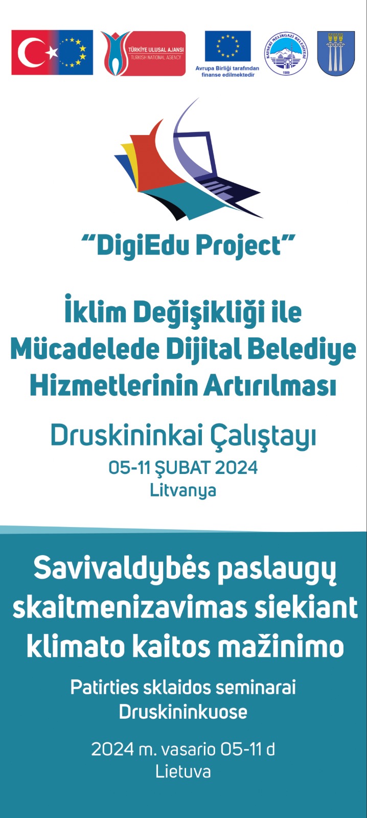 The DigiEdu Project aims to accelerate the digitalization of municipalities to help combat climate change. It focuses on developing training models to enhance the use of digital municipal services, particularly among older adults and individuals aged 60 and above. By promoting digital service adoption, the project aims to reduce physical visits to municipalities, thus lowering carbon emissions from vehicle use.Led by Melikgazi Municipality (Turkey) and Druskininkai Municipality (Lithuania), DigiEdu is an Erasmus+ initiative aimed at advancing the digital transformation of local governments. The project includes training for individuals aged 60+, enabling them to utilize digital systems effectively. Educational materials were developed for both online and in-person formats, with workshops in both countries facilitating knowledge sharing among IT experts.Key achievements include the development of three training models focused on municipal digital services, improved digital skills for individuals aged 60+, and an increase in the usage of these digital services. As a result, vehicle use was reduced, leading to lower carbon emissions. Additionally, DigiEdu created a culture-neutral model of digital services adaptable to local governments globally.The DigiEdu Project combines digital transformation, climate action, and adult education in a transformative way. By improving digital service access for older adults and reducing the need for physical visits, the project contributed to climate change mitigation. The collaboration between municipalities fostered a knowledge-sharing environment, allowing the development of effective, universal digital solutions. DigiEdu sets an example for other municipalities and supports lifelong learning, providing a foundation for future policies on sustainable digital transformation.