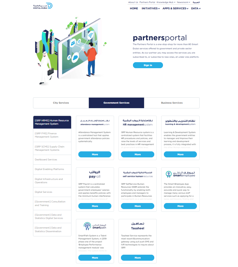 The Government Resource Planning (GRP) Human Resource Management System (HRMS) is a secure, unified platform supporting over 85 government entities and 75,000+ employees. It streamlines HR operations, enhances efficiency, and ensures standardized procedures and policies.GRP HRMS serves as a single source of truth for Dubai Government employee data, integrating advanced ICT to automate transactions and support the paperless initiative by digitalizing over 250 requests. It enhances HR operations through mobility and business intelligence, managing processes from recruitment and onboarding to payroll, performance tracking, and development. Its adaptability extends to private companies like ParkIN.Ensuring security and reliability, GRP HRMS complies with ISO 27001 standards, maintains 99% uptime, and features an offline-enabled Smart Employee App. The system optimizes the employee journey, from automated recruitment and onboarding to self-service HR management, payroll processing, and structured performance evaluations.GRP HRMS has improved HR efficiency, reduced administrative burdens, and enhanced transparency. Its adoption has driven sustainability, saving costs and reducing paper use.GRP HRMS has improved HR management efficiency, reducing administrative burdens, enhancing data accuracy, and providing real-time insights. Mobility and business intelligence features empower HR professionals and employees, fostering agility. The system's adoption has led to increased transparency, better governance, and higher employee satisfaction.GRP HRMS delivers substantial financial savings, generating an annual ROI of 130 million AED. Beyond cost savings, it has advanced Dubai's sustainability goals by digitalizing over 250 requests, significantly reducing paper consumption. Through modules like Dubai Career and SmartPath, GRP HRMS supports comprehensive talent management from recruitment to performance evaluation. The Learning and Development System ensures continuous employee growth.