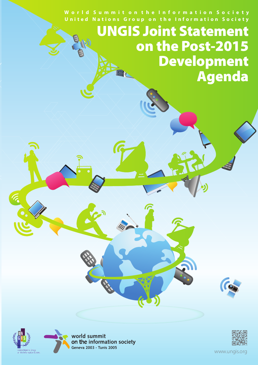 In keeping with its mandate to promote policy coherence and programme coordination in the UN system, as well as provide guidance on issues related to information and communications technologies (ICTs) in support of internationally agreed development goals, the 30 members of the UN Group on the Information Society (UNGIS) will respectfully submit a joint statement to the UN Secretary General and the UN Task Team. The statement is a collective contribution to the dialogue on the Post-2015 Development Agenda, a unified effort to harness inter-agency expertise and experience to support deliberations on Post-2015 priorities, and a united commitment to a UN community poised to address development challenges in the 21st century.