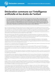 | This joint statement sets out a shared commitment to advancing a child rights-based approach to artificial intelligence. It is co-signed by the International Telecommunication Union (ITU), the United Nations Committee on the Rights of the Child (CRC), UNICEF, the International Labour Organization (ILO), the Inter-Parliamentary Union (IPU), UNESCO, UNICRI, UNODA, the Office of the United Nations High Commissioner for Human Rights, the Special Representatives of the UN Secretary-General for Children and Armed Conflict and on Violence against Children, the UN Special Rapporteur on the sale, sexual exploitation and sexual abuse of children, and Safe Online. The statement is co-branded by more than 50 organizations and calls for coordinated action to ensure that AI is designed, developed and governed in ways that respect, protect and fulfil the rights of the child. Table des matières